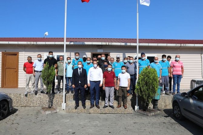 Akçaabat Belediye Başkanı Osman Nuri Ekim, Kurban Bayramı öncesi mesainin son günü Belediye çalışanlarıyla bayramlaştı.