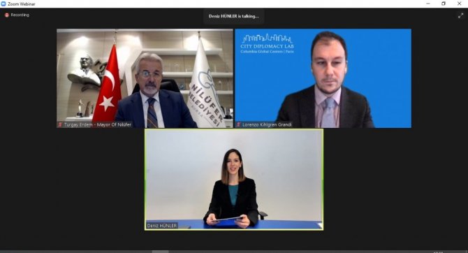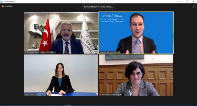 Glasgow Belediye Başkanı Joe Brady, Montreal Uluslararası Koordinasyon Merkezi Başkanı Veronique Lamontagne, Columbia Global Centers Direktörü Lorenzo Kihlgren Grandi gibi isimlerin de yer aldığı oturumda Başkan Erdem, Nilüfer Belediyesi'nin dünyada ve Türkiye'de yaşanan hızlı değişim ve karşılaşılan yeni sorunlar için geliştirdiği çözüm yaklaşımları hakkında bilgi verdi.