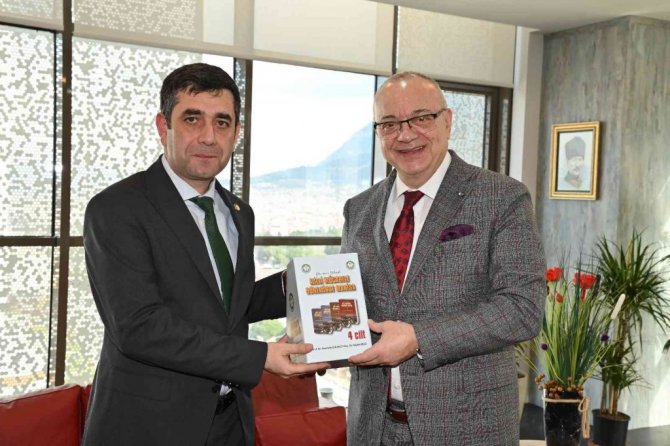 Kendisini konuk etmesi nedeniyle Başkan Ergün'e teşekkür eden İl Müdürü Feridun Gülgeç, kurumun çalışmaları hakkında da bilgiler verdi. Ziyaretten duyduğu memnuniyeti ifade eden Manisa Büyükşehir Belediye Başkanı Cengiz Ergün de konuğuna Manisa Büyükşehir Belediyesi'nin destekleri ile Manisa Celal Bayar Üniversitesi akademisyenleri tarafından hazırlanan 4 ciltlik "Yüzüncü Yılında Milli Mücadele Döneminde Manisa" isimli kitap serisini hediye etti.
