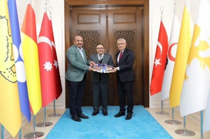Toplantının ardından Güder, Böke'yi makamında konuk ederek, hediye takdiminde bulundu.