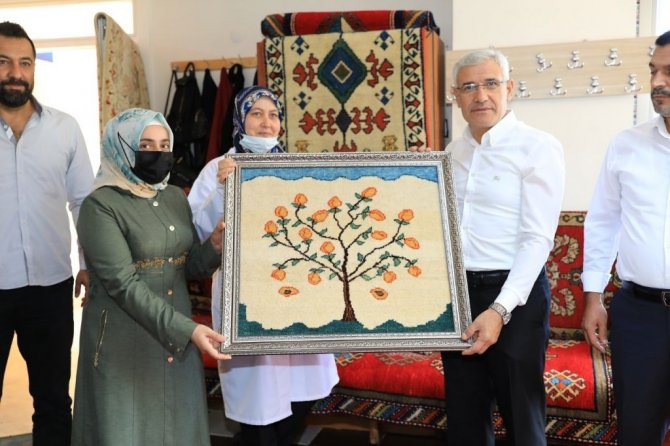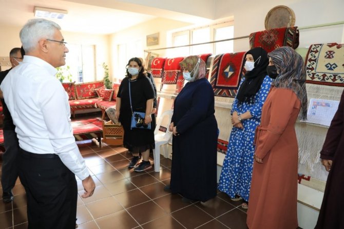 Malatya'nın Battalgazi Belediye Başkanı Osman Güder, semt konağında açılan halı dokuma kursundaki kursiyerlerle bir araya gelerek, sohbet etti.