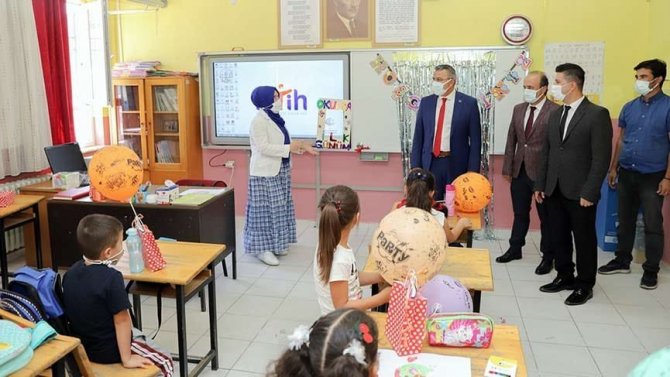 Köşk'te ilk ders zilinin çalmasıyla öğrenciler uzun bir aradan sonra yüz yüze eğitime başlarken, Köşk Belediye Başkanı Nuri Güler de Çiftlik İlkokulu'nu ziyaret ederek minik öğrencilerin heyecanına ortak oldu.