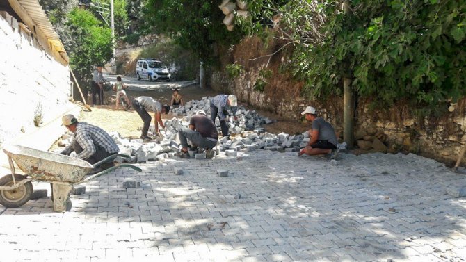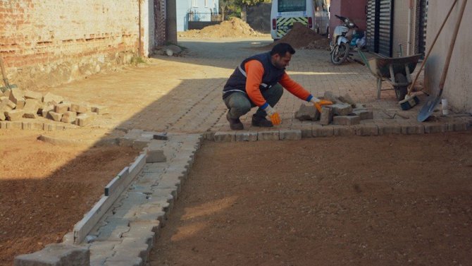 Köşk Belediyesi Fen İşleri Müdürlüğü'ne bağlı ekipler, Çiftlik ve Cumayanı mahallelerinde bordür ve kilitli parke taşı döşeme çalışması gerçekleştiriyor.