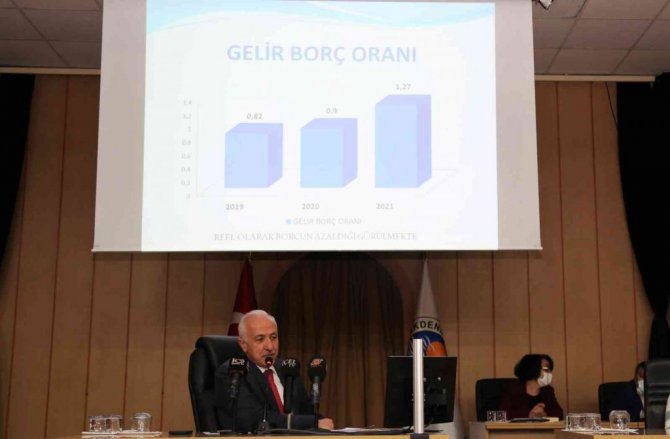 Gültak, reel olarak belediyenin borcunun azaldığına vurgu yaparak, "Değerli meclis üyeleri 2019 yılında gelir-borç oranımız 0,82 iken 2020 yılında 0,90 olmuştur. 2021 yılında ise bu oran 1,27 şeklindedir" dedi.