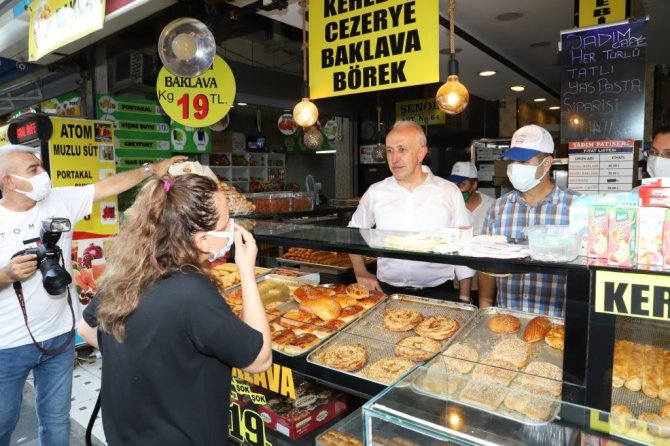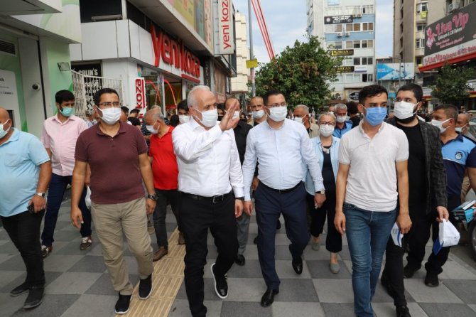 Mersin'in merkez ilçe Akdeniz Belediye Başkanı Mustafa Gültak, Kuvvai Milliye Caddesi üzerinde faaliyet gösteren esnafları ziyaret ederek, alış verişe gelen vatandaşlarla sohbet etti.