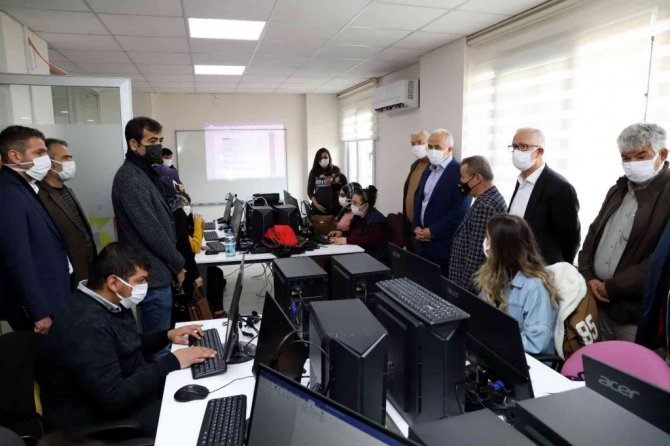 Merkezin ikinci katındaki Akdeniz Mesleki Eğitim Atölyeleri Projesi kapsamında verilen eğitimlerle ilgili de bilgi veren Gültak, buradaki kursların, Türkiye İş Kurumu Genel Müdürlüğünce iş insanları, sanayiciler ve organize sanayi bölgelerini kapsayan anket sonucu en çok ihtiyaç duyulan mesleklerin belirlenip verildiğini anlattı. Gültak, "Biz de anket sonucu en çok ihtiyaç olduğu belirlenen Autocad ve 3Ds Max, Grafik Tasarım ve Fotoğrafçılık, Ön Muhasebe ile Halkla İlişkiler mesleklerini seçtik. Bu alanlarda 72 kursiyerin katıldığı eğitimler 6 ay sürecek. Bu eğitimleri bitiren kursiyerlerimizin hızlı bir şekilde serbest piyasada iş bulmalarını hedefliyoruz" dedi.