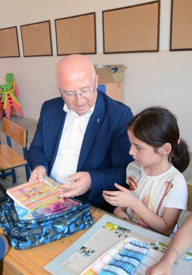 Menteşe Belediye Başkanı Bahattin Gümüş, ‘Mutlu Çocuklar, Umutlu Yarınlar’ projesi kapsamında kırsal mahallelerde eğitim öğretimine devam eden çocuklara içerisinde defter, silgi, pastel-kuru boya kalem, etiket, kalemlik ve kağıt bulunan çantalardan hediye etti.