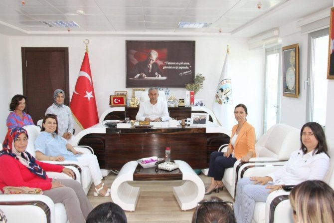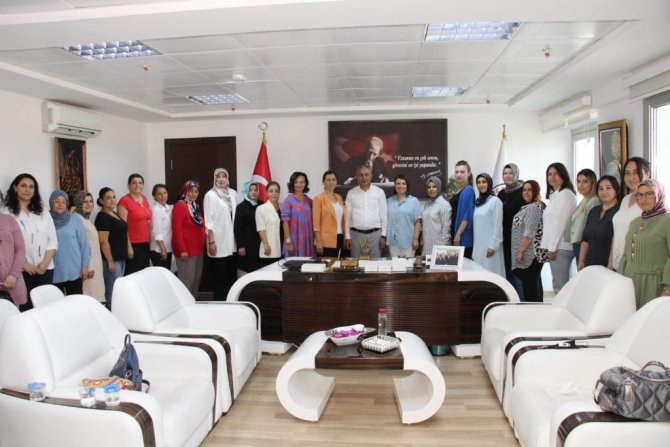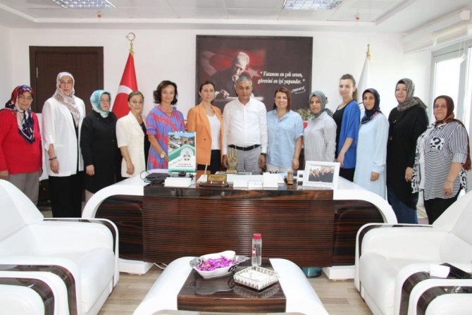 AK Parti Aydın İl Kadın Kolları Başkanı Duygu Göğde ile ilçe kadın kolları başkanları, Koçarlı Belediye Başkanı Nedim Kaplan'a ziyarette bulundu.