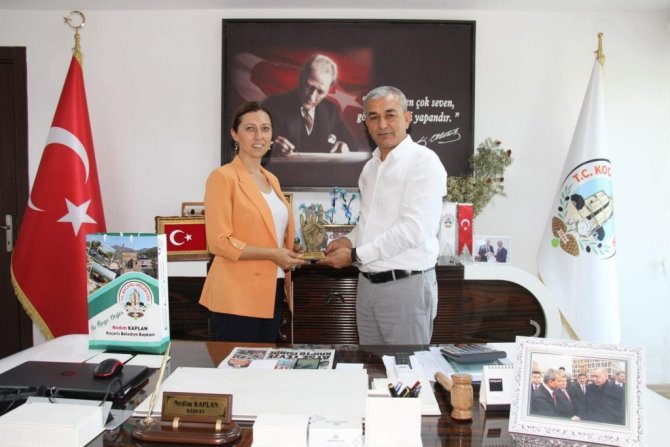 Bir dizi temaslarda bulunmak üzere Koçarlı'ya gelen AK Parti Aydın İl Kadın Kolları Başkanı Duygu Göğde ile ilçe kadın kolları başkanları, Belediye Başkanı Nedim Kaplan'a ziyaret gerçekleştirdi. Başkan Göğde ve ilçe kadın kolları başkanlarını, Belediye Başkan Yardımcısı Yasemin Kanat ve İlçe Kadın Kolları Başkanı Aylin Dağdeviren ile birlikte makamında ağırlayan Başkan Kaplan, ilçedeki sosyal belediyecilik kapsamındaki çalışmaları, kadınlarla gençlerin sosyal ve iktisadi alanlarda daha fazla katılımcı olmalarını sağlamak amacıyla geliştirdikleri projelerle hedeflerine ilişkin açıklamalarda bulundu.