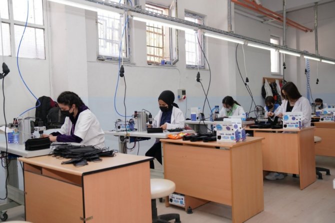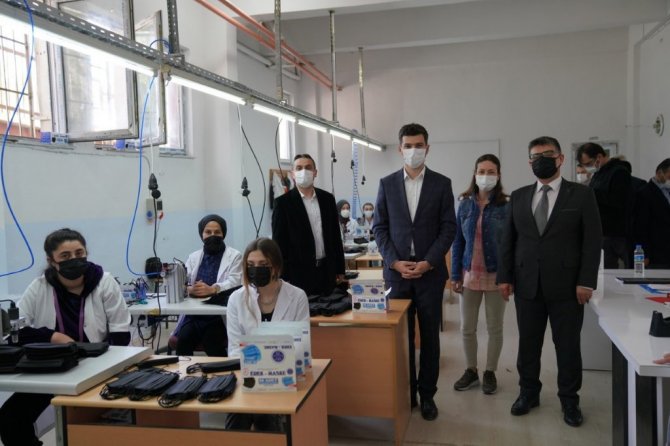 Erbaa Belediye Başkanı Ertuğrul Karagöl Erek Mesleki ve Teknik Anadolu Lisesi'nin okulda kurup günlük 10 bin maske ürettiği atölyeyi ziyaret etti.