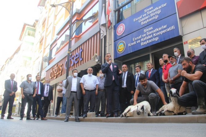 Sivas Esnaf ve Sanatkarlar Kredi Kefalet Kooperatifi Başkanı seçilen Mesut Dursun kurban kestirerek göreve başladı.