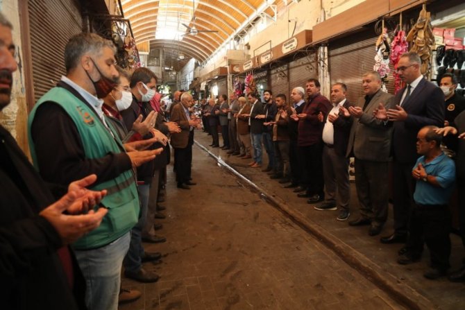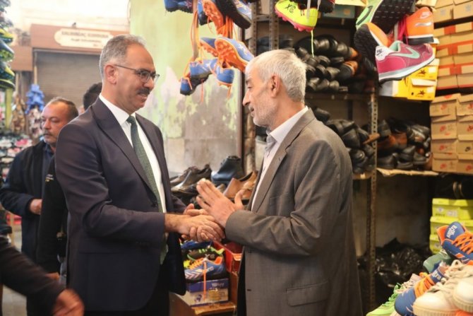 Eyyübiye Belediye Başkanı Mehmet Kuş, ilçeyi karış karış dolaşıp, esnaf ve vatandaşlarla bir araya gelmeye, talepleri dinlemeye ve yerinde çözümler üretmeye devam ediyor. Eyyübiye Belediye Başkanı Mehmet Kuş son olarak beraberinde Belediye Başkan Yardımcısı Ali Çiftçi, Meclis Üyesi İbrahim Halil Beyaz, önceki dönem Meclis Üyesi Bilal Tekatlı ve Muradiye Mahallesi eski Muhtarı Mehmet Alak'la birlikte Akarbaşı, Gümrükhanı, Attar Pazarı, Ayakkabıcılar ve Kunduracılar Pazarı esnafıyla bir araya geldi. Esnafı tek tek dolaşan ve taleplerine çözümler üretip, hayırlı işler temennisinde bulunan Başkan Kuş, ayakkabıcılar çarşında bulunan bir esnafla toplu ayakkabı alımı pazarlığında bulundu. Başkan Kuş, alınan ayakkabıları Eyyübiye Belediyesi Sosyal Yardım İşleri Müdürlüğüne gönderip ilçedeki ihtiyaç sahiplerine dağılması talimatını da verdi.