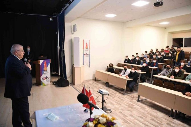 Sözlerinin devamında gençlere telkinlerde de bulunan Başkan Mahçiçek, "Bizim eksiğimiz yerel düzeyde Expo'nun nasıl bir proje olduğunu, nasıl artıracağını anlatmamız lazımdı. Bu bağlamda geleceğimizin sahibi olan gelecekte bu ülkeyi bizden daha iyi yönetecek olan çocuklarımıza projeyi anlatmak için bir araya geliyoruz. Çocuklarımız baharda alanda gezdikleri zaman EXPO projesini daha iyi anlayacaklar. Ülkemizin yeni nesli bu ülkeyi daha yaşanabilir bir hale getirecektir. Sizden beklentimiz bu ülkeyi bizden daha iyi yönetmeniz. Kendinizi iyi yetiştirecek, bu ülkeyi bizden daha iyi noktalara taşıyacaksınız" ifadelerini kullandı.
