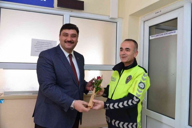 Kahramankazan Belediye Başkanı Serhat Oğuz, Polis Teşkilatı'nın 177'inci kuruluş yıl dönümü dolayısıyla İlçe Emniyet Müdürlüğü'nü ziyaret ederek, görevleri başındaki polislere karanfil verip, günlerini kutladı.