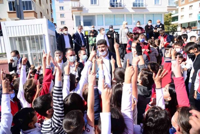 Ankara Kahramankazan şehir merkezinde önünden geçtiği ilkokulun öğrencileri tarafından okula davet edilen Kahramankazan Belediye Başkanı Serhat Oğuz,...