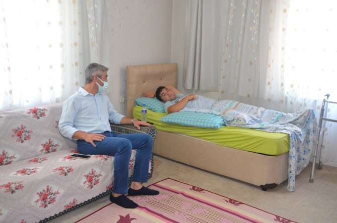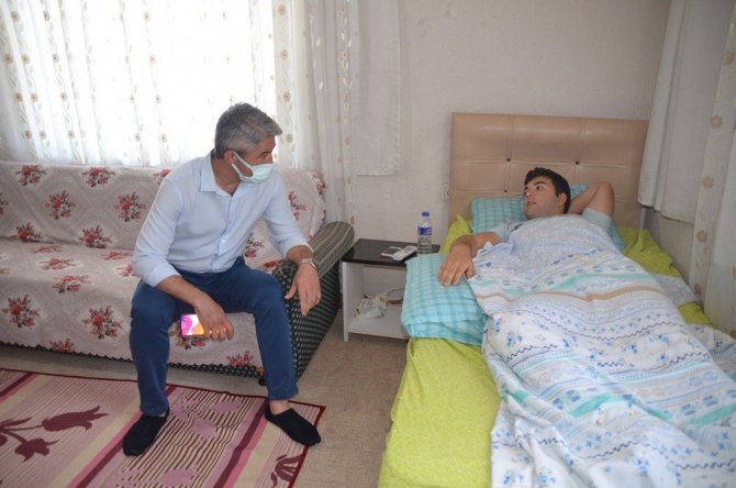 Marmaris Belediye Başkanı Mehmet Oktay, Marmaris'teki yangın söndürme çalışmaları sırasında üzerine ağaç devrilen Hüseyin Deveci isimli genci ziyaret...