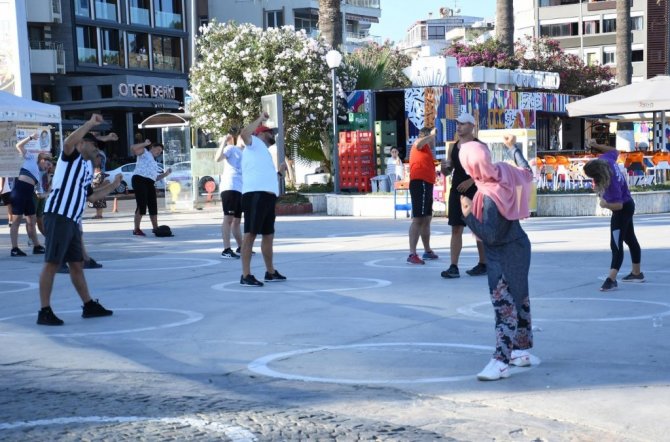 Aydın Büyükşehir Belediyesi'nde görevli spor antrenörü Fatma Doğan Alan, "Pandemi döneminde başladığımız sabah sporu etkinliğine devam ediyoruz. Hafta içi her gün sabah 8'de İsmail Cem Dostluk ve Barış Meydanı'nda buluşuyoruz. Kuşadası halkı etkinliğimize yoğun ilgi gösteriyor. Bugün Belediye Başkanımız Sayın Ömer Günel de etkinliğimize katılım sağladı. Keyifli bir etkinlik oldu" dedi.