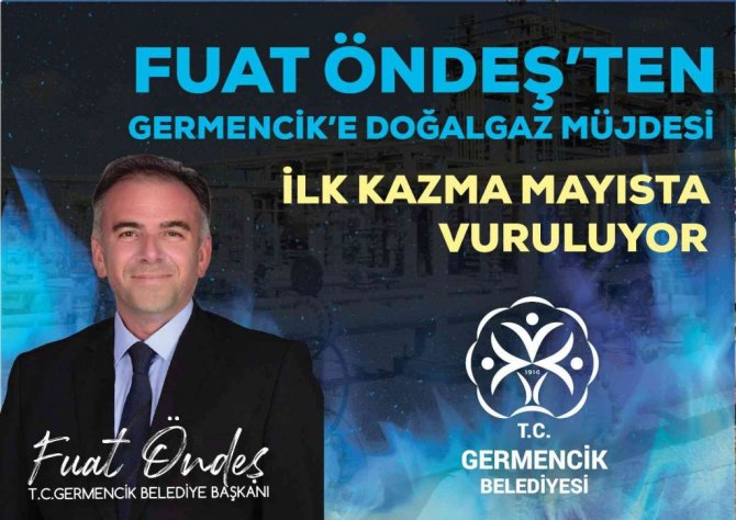 İki tanesi Germencik Belediyesi, bir tanesi Büyükşehir Belediyesi işbirliğiyle olmak üzere 3 tesis açılışı ile ilçeye hizmetlerini sürdüren Fuat Öndeş, ilçenin doğalgaza kavuşacağı tarihi açıklayarak müjdeyi verdi. Doğalgaz yetkilileri ile bir araya gelen Belediye Başkanı Öndeş yetkili firmadan yapılacak çalışmalarla ilgili bilgi aldı, ilk kazmanın bayramdan sonra vurulacağını, çalışmaların ise 2022 sonunda tamamlanarak kış başında ilçeye ilk doğalgazın verileceğini ifade etti. Doğalgaz firmasının yatırım planına göre ilk etapta 6 mahallede uygulanacak olan proje daha sonrası için yine yetkili firmanın planlamalarına göre yaygınlaşacak.