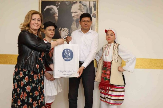 Gazi Mustafa Kemal Atatürk'ün tüm dünya çocuklarına armağanı olan 23 Nisan Ulusal Egemenlik ve Çocuk Bayramı dolayısıyla Kırgızistan, Bulgaristan, Makedonya, Gürcistan ve Ankara'dan halk dansları toplulukları Nazilli'ye geldi. 23 Nisan kutlama programı öncesi ilk gösterilerini Belediye Meydanı'nda yapan öğrenciler, Belediye Başkanı Kürşat Engin Özcan'ı makamında ziyaret ederek ülkelerine ait hediyeleri takdim etti.