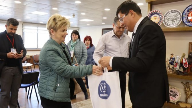 Nazilli Belediye Başkanı Kürşat Engin Özcan, Demirciler Ortaokulu Erasmus Projesi çerçevesinde Nazilli'ye gelen öğrencileri makamında ağırladı.