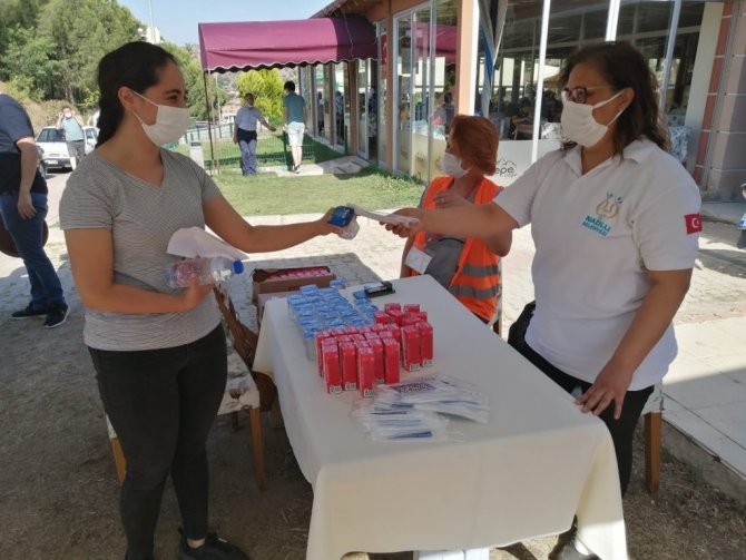 Sabah erken saatlerde stant açarak öğrenciler ve ailelerine ikramda bulunan ekipler, 2 gün boyunca 17 farklı noktada 15 bin adet maske, meyve suyu ve maske dağıttı.
