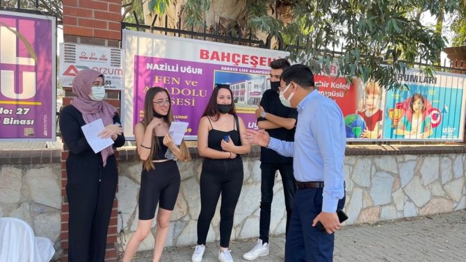 Nazilli Belediyesi ekipleri, Yükseköğretim Kurumları Sınavı (YKS)'ne girecek olan adaylara 17 okulda 15 bin adet su, maske ve meyve suyu dağıttı.