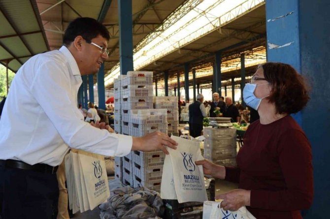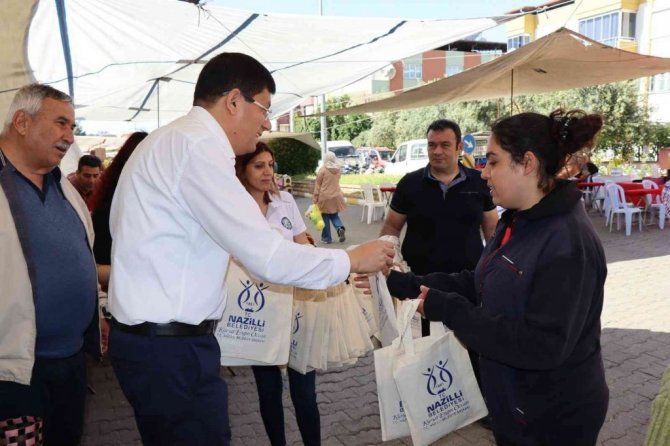 Nazilli Belediye Başkanı Kürşat Engin Özcan, Anneler Günü dolayısıyla belediye personelleri tarafından özel olarak hazırlanan 10 bin adet önlük dağıttı.