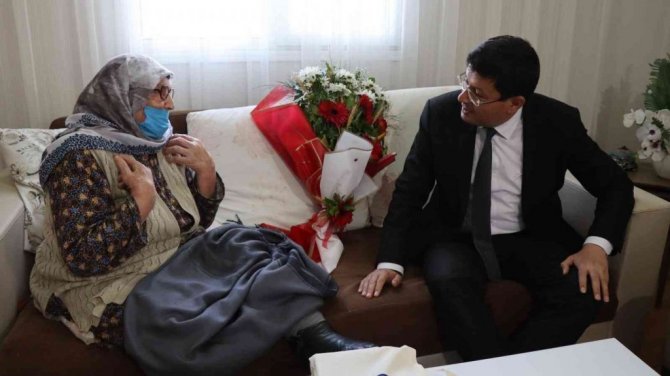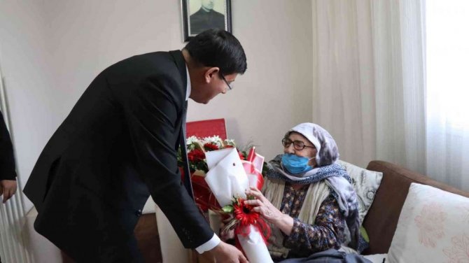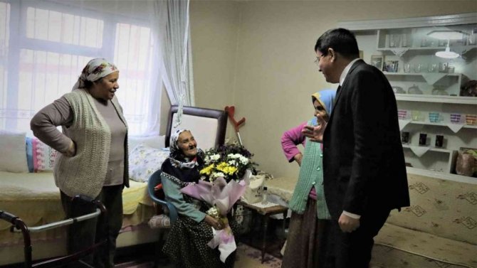 İlk olarak Yıldıztepe Mahallesi'nde yaşayan 1920 doğumlu 102 yaşındaki Nazlı Ballı'yı evinde ziyaret ederek sürpriz yapan Başkan Özcan, "Sizlere sağlıklı sıhhatli uzun ömürler diliyorum. Bizim en büyük hazinemiz sizlersiniz. Bu anlamlı günde sizlerle birlikte olmaktan gurur ve mutluluk duyuyorum" diyerek çiçek takdim etti.