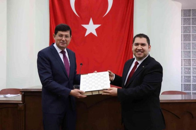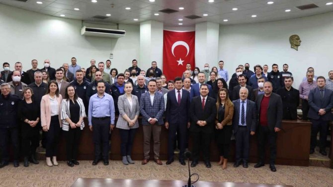 Zorlu şartlara rağmen personel haklarının verilmesi konusunda desteklerinden dolayı Başkan Özcan'a teşekkür eden Türk Yerel Hizmet Sendikası İzmir-Aydın Şube Başkan Yardımcısı Engin Tulumbacı hediye takdiminde bulundu.
