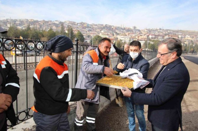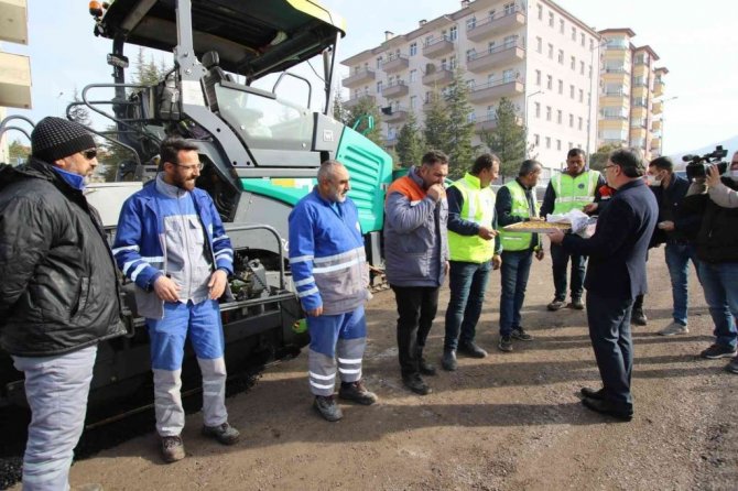 Başkan Özdoğan daha sonra çalışma bölgesindeki personele tatlı ikramında bulunarak kolaylıklar diledi.