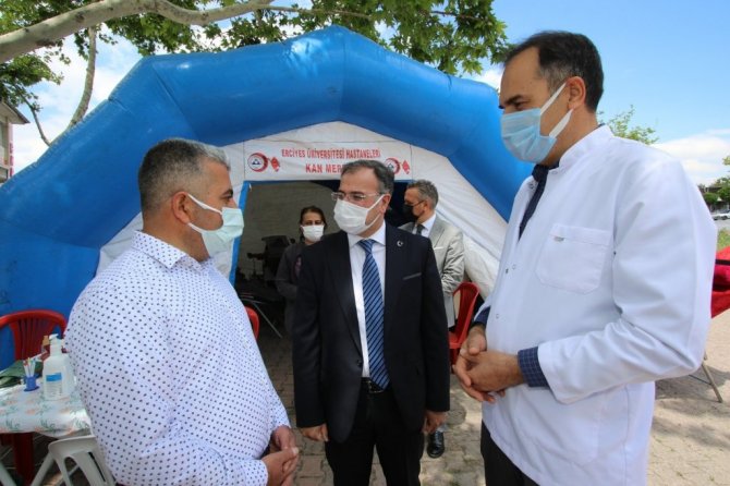 Kan vererek hayat verildiğine vurgu yapan Başkan Özdoğan, "ERÜ kan merkezi çalışanlarına ilçemizde böyle bir etkinlik yaptıkları için teşekkür ediyorum. Bizde düzenli olarak kan vermeye çalışıyoruz. Erkelerde üç ayda bir bayanlarda da dört ayda bir kan verilmesi tavsiye ediliyor. Kan vererek can veriyoruz, hayat veriyoruz. Kan vererek daha sağlıklı yaşam adına da kendimize, vücudumuza da iyilik yapıyoruz." İfadelerini kullandı.
