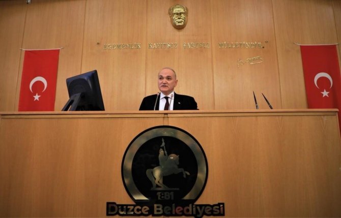 Düzce Belediyesi Nisan ayı meclis toplantıları ikinci oturumu Belediye Başkanı Dr. Faruk Özlü'nün başkanlığında gerçekleştirildi. Meclisin ilk gündem maddesi öncesinde meclis üyelerine hitap eden Belediye Başkanı Dr. Faruk Özlü, belediyenin üç yıllık çalışmalarını aktardı. Meclis üyelerine kısa bir süre önce kaleme aldığı "Beyaz Kitap"ı da imzalayarak hediye eden Belediye Başkanı Dr. Faruk Özlü ayrıca her üye için ayrı ayrı hazırladığı içerisinde 81 ayrı konunun yer aldığı sunum kitapçığını da verdi.