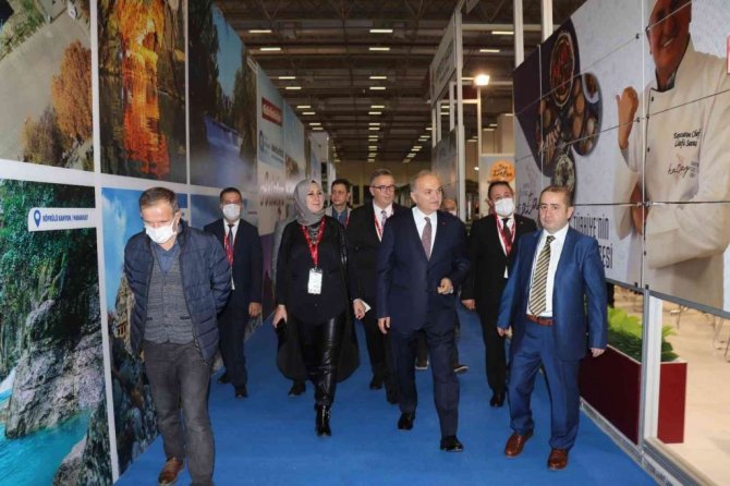 Türkiye'nin en büyük uluslararası turizm fuarlarından olan Travel Turkey İzmir Turizm Fuarı renkli görüntülere sahne oldu. Düzce standında misafirlerini ağırlayan Düzce Belediye Başkanı Dr. Faruk Özlü, sık sık da diğer belediyelerin standlarını gezdi. Özlü, Balıkesir standında zeytin kırdı, Dikili standında ise halı dokudu.