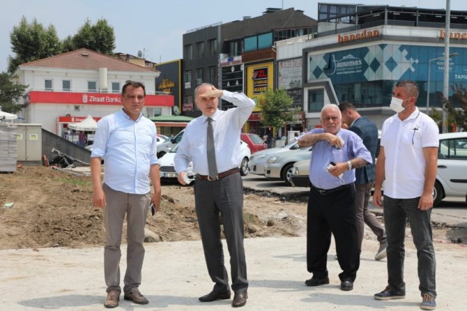Düzce Belediye Başkanı Dr. Faruk Özlü, Kent Estetiği Projesinin en önemli etabı olan İstanbul Caddesinin üst yapı çalışmaları yerinde inceledi.