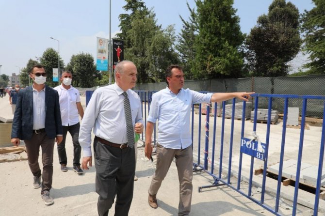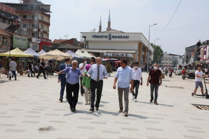 Anıtpark Meydanından Belediye hizmet binasına kadar yapılan çalışmaları yerinde inceleyen Başkan Özlü, cadde üzerindeki esnafları da ziyaret ederek proje çalışmaları hakkında konuştu.