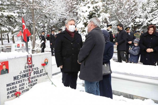 Melikgazi Belediye Başkanı Dr. Mustafa Palancıoğlu, 18 Mart Çanakkale Zaferi ve Şehitlerini Anma Günü dolayısıyla şehitlik ziyareti yaparak, şehit aileleri ile yakından ilgilendi.