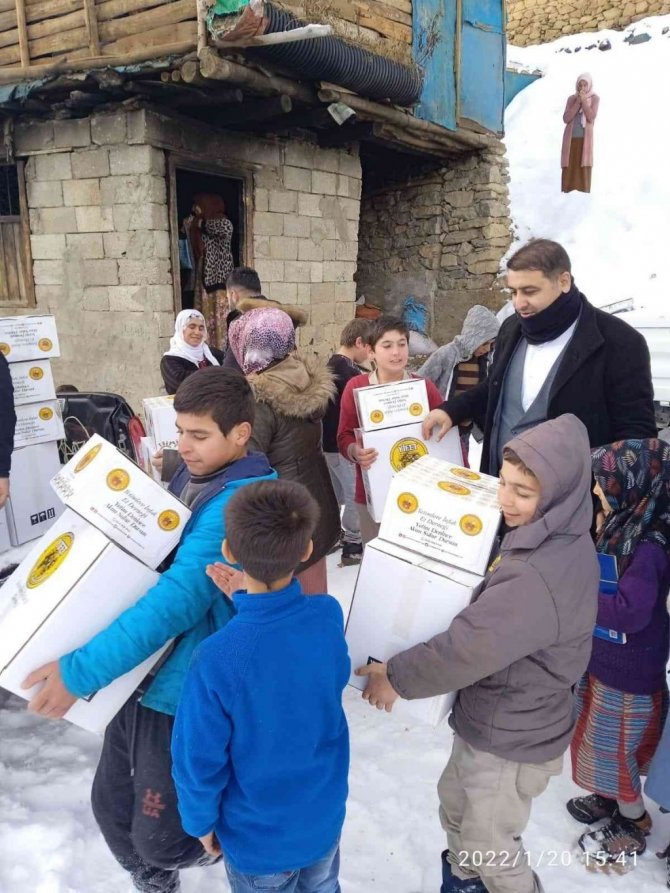 AK Parti Bahçesaray İlçe Başkanı Cumali Sabırlı, 300 aileye gıda kolisi, 400 çocuğa ise karne hediyesi dağıttı.