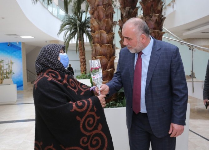 Belediyedeki kadın çalışanlara karanfil takdim etti