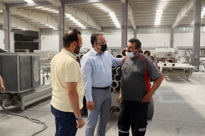 Başkan Savran ziyaretlerinde işletmelerin üretim alanlarını da gezdi. Çalışan personellerle sohbet eden Savran, imalatı gerçekleştirilen ürünler hakkında işletme yöneticilerinden bilgiler aldı.