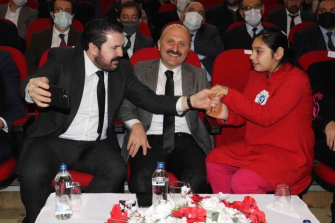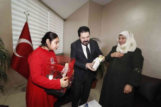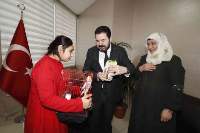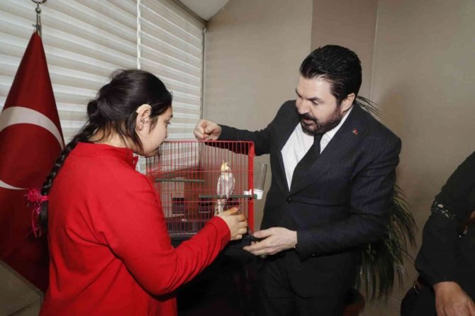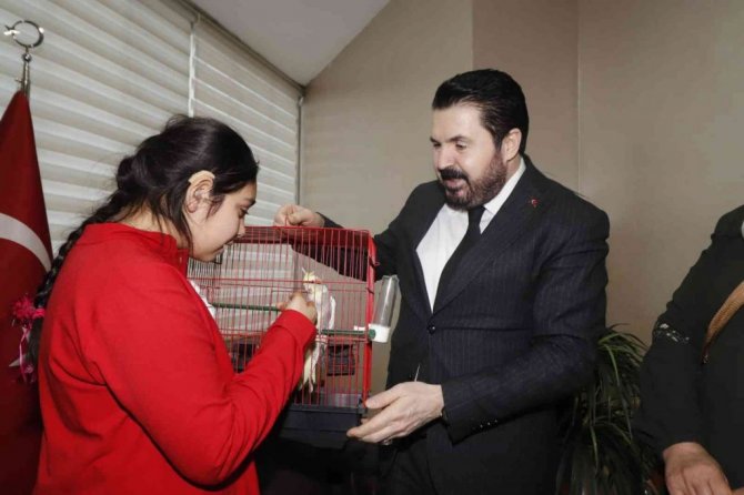 Ağrı Belediye Başkanı Savcı Sayan, 3 Aralık Dünya Engelliler Günü nedeni ile düzenlenen programda kendisinden papağan isteyen 15 yaşındaki engelli Elifnur Köroğlu'un isteğini yerine getirdi
