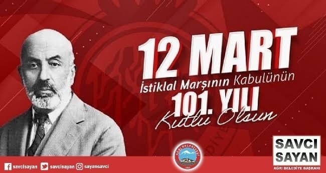 Ağrı Belediye Başkanı Savcı Sayan, 12 Mart İstiklal Marşının Kabulü ve Mehmet Akif Ersoy'u Anma Günü dolayısıyla bir mesaj yayınladı.