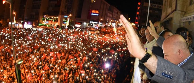 Büyükşehir Belediye Başkanı Mehmet Sekmen, Erzurum'un milli iradenin bayraktar şehri olduğunu belirtti. Sekmen, sözlerini şöyle tamamladı: "Medeniyetini barış ile inşa edenlerin, hak isteyene hakkını, başkaldıranın başını ezenlerin vatanında Başkomutanımızın dirayetiyle istiklal ve istikbalimiz için fert fert ay yıldızlı bayrağımızın sancağı olduk. O gece aziz milletimiz Hak ve Vatan davasının sırrına erenlerle tek vücut olarak, hainlere asla geçit vermedi. O günü hafızamızdan hiç çıkarmayacağız. Terörist başı satılmış FETÖ ve postallı işbirlikçilerinin bu aziz vatana kastını asla unutmadık ve unutmayacağız da Bu vesileyle vatanımız, milletimiz, ezanımız ve ay yıldızlı bayrağımız uğruna şehit düşen kahramanlarımızı, demokrasi şehitlerimizi saygı, sevgi, rahmet ve minnetle anıyorum. Destan yazdığımız o gece gazilik mertebesine ulaşan yiğitlerimize ve nene hatunlarımıza da şükranlarımı sunuyorum. Şehitlerimizin ruhları şad, makamları cennet olsun."
