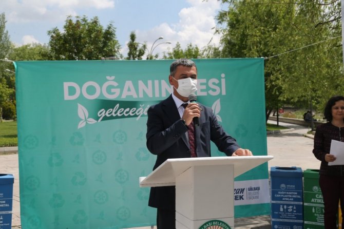 İkili toplama sistemi hakkında da bilgi veren Şimşek, "Sıfır Atık Projesi kapsamında ikili toplama sitemine geçiş ve kaynağında ayrı toplama çalışmalarımız devam etmektedir. Bu amaçla salgın dönemi normalleşme sürecine girildiği bu günlerde Eymir Mahallesi TOKİ bölgesinde hanelerden atıkların ayrı toplanması konusunda bilgilendirme çalışmaları yapılmış, vatandaşlarımıza ev ev ayrı toplama ekipmanı dağıtımı gerçekleştirilmiştir. Bundan sonraki süreçte salgının etkisinin azalmasına paralel olarak çalışmalarımıza hız kesmeden devam edeceğiz. Hepinize yaşanabilir ve temiz bir çevrede mutlu ve sağlıklı bir ömür dilerim" ifadelerini kullandı.