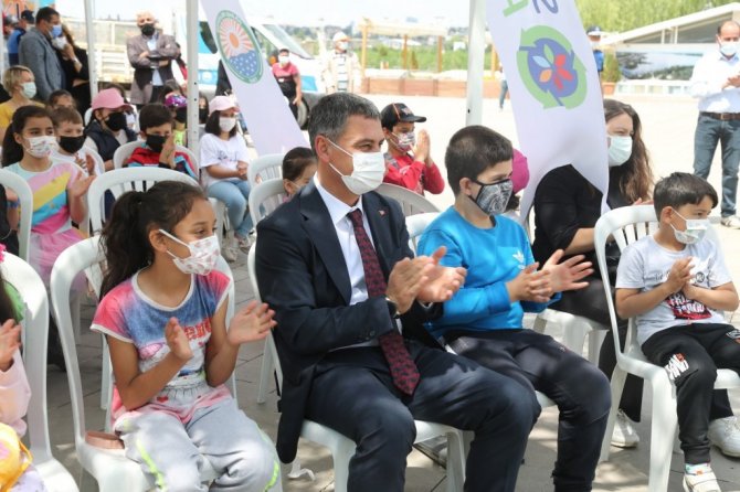 Mogan ve Eymir Gölleri'nde değişik türlerden binlerce kuş türünün bulunduğuna dikkat çeken Başkan Şimşek, "Havaların ısınması ve baharın gelmesiyle birlikte kuş cennetine dönüşen gölde, doğanın hareketliliğini izlemek insanlara keyif vermektedir. Bu değerimizi korumak ve geleceğimiz olan siz değerli öğrencilere aktarmak adına Mogan Dip Çamuru temizlenmesi projesi devam etmektedir. Dünyada sadece Mogan Gölü çevresinde yetişen ve Gölbaşımızın simgesi olan Sevgi Çiçeğinin korunması çalışmaları devam etmekte, her yıl binlerce tohum ekilmektedir. Tabii kaynakların yönetiminde var olan kaynakların korunması birinci önceliğimizdir. Koruyarak kullanmak en önemli prensibimizdir" açıklamalarında bulundu.
