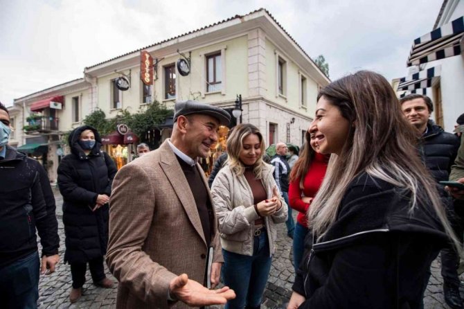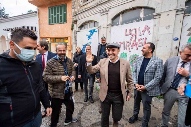 İzmir'in tüm ilçelerinde muhtarlarla bir araya gelerek sorunları tespit eden, proje ve yatırımları yerinde inceleyen İzmir Büyükşehir Belediye Başkanı Tunç Soyer, 2022 yılının ilk ziyaretini Urla'ya yaptı. İzmir Büyükşehir Belediyesi Urla Yerel Hizmetler binasında ilçedeki muhtarlarla buluşan Başkan Tunç Soyer, talepleri dinleyip not aldı. Başkan Soyer'e İzmir Büyükşehir Belediyesi Başkan Vekili Mustafa Özuslu, CHP İzmir İl Başkanı Deniz Yücel, İZBETON Genel Müdürü Heval Savaş Kaya, CHP Urla İlçe Başkanı Hakan Özbadur, İzmir Büyükşehir Belediyesi Urla Yerel Hizmetler Şube Müdürü Yener Kırmızı eşlik etti. Başkan Soyer, Urla'da esnafı da ziyaret etti.