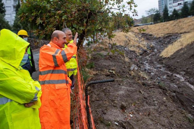 Yağmur suyu ve atık suyun ayrıştırılması için on milyonlarca liralık yatırım yapıldığını söyleyen Başkan Soyer, "Çünkü yağmur suyu ve atık su ayrıştırılmadıkça Körfez'in kirliliğiyle, kokuyla başa çıkmak mümkün değil. Kalıcı çözüm atık su ve yağmur suyunun aynı kanaldan akmasını engellemek. Bugün Zübeyde Hanım Mahallesinde 10 kilometreye yakın güzergahtaki bir çalışmayı yerinde gördük. Çalışma en geç aralık sonu bitmiş olacak. Şirintepe ve Güzeltepe bölgesinde 18,5 milyonluk yatırım bedeli olan ayrıştırma projesi vardı. Kısacası yürütülen çalışmalar hem Körfez'in temizliğinin sürdürülebilirliğini sağlıyor hem dereler ıslah edilerek taşkınlar konusunda önemli bir rahatlama sağlanıyor. O yüzden çok memnunuz, arkadaşlarımı kutluyorum. Yağmura rağmen yaptığımız bu kontroller, ziyaretler hepimizin yüreğine su serpti" ifadelerini kullandı.