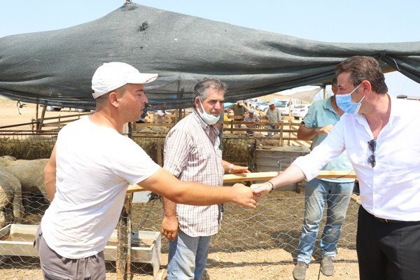 Balıkesir'in Bandırma ilçesinde Belediye Başkanı Tolga Tosun arefe gününde kurban pazarına giderek hayvan sahipleri ve vatandaşlar ile görüştü.