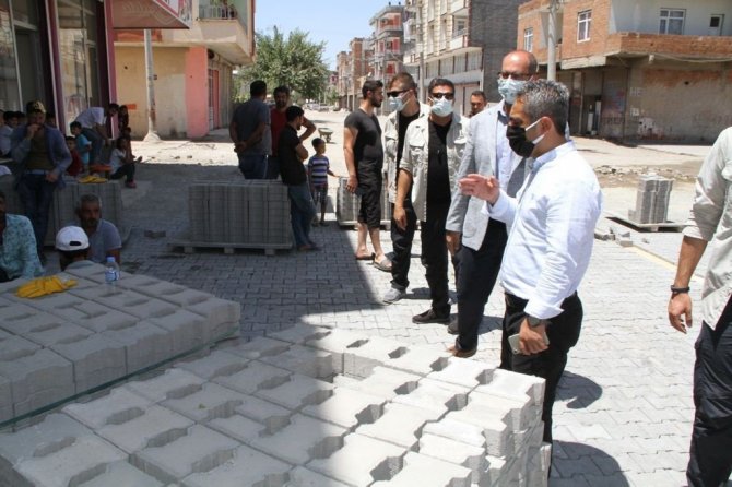 Diyarbakır'ın Bismil İlçe Kaymakamı ve Belediye Başkan Vekili Hamza Türkmen, Sanayi Mahallesinde devam eden kilitli parke taşı döşeme çalışmalarını...