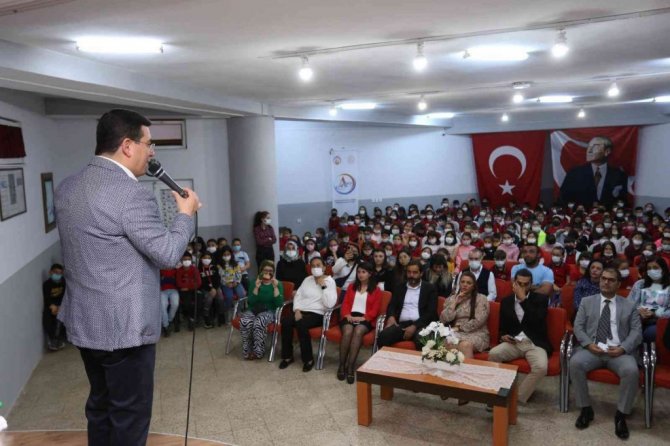Kepez Belediye Başkanı Hakan Tütüncü, öğrencilere yerel yönetimi anlattı.
