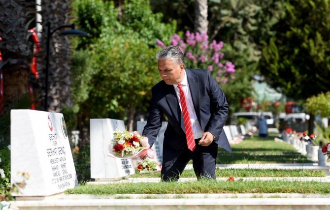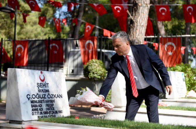 Başkan Uysal, şehit kabirlerini ziyaret edip çiçek bıraktı